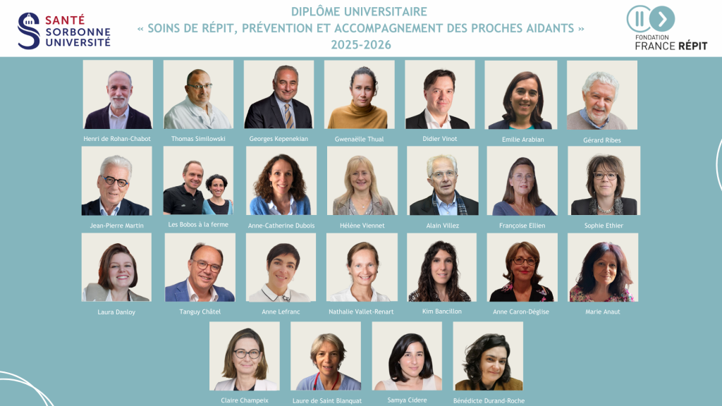 Une « Communauté d’Intérêt Scientifique » a été créée autour du Diplôme Universitaire francophone « Soins de répit, prévention et accompagnement des proches aidants » réunissant des acteurs de référence francophone du répit et du soutien aux proches aidants, qui pourront intervenir au sein du Diplôme et contribuer à la réflexion sur la thématique du répit et des aidants.